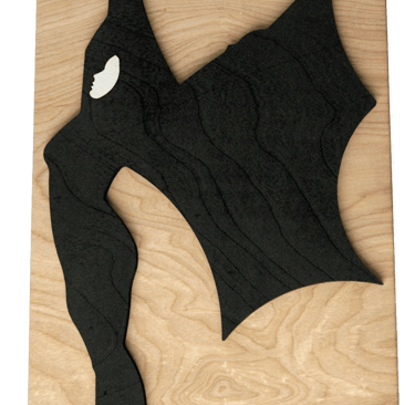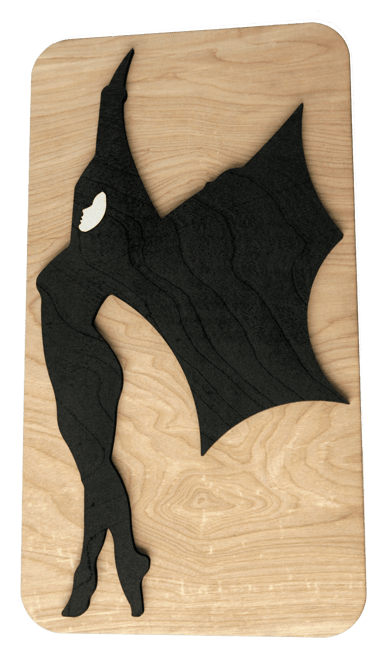 The images are cut out of wood (x-veneer), and assembled in layers. This gives depth to the image, and highlights details.